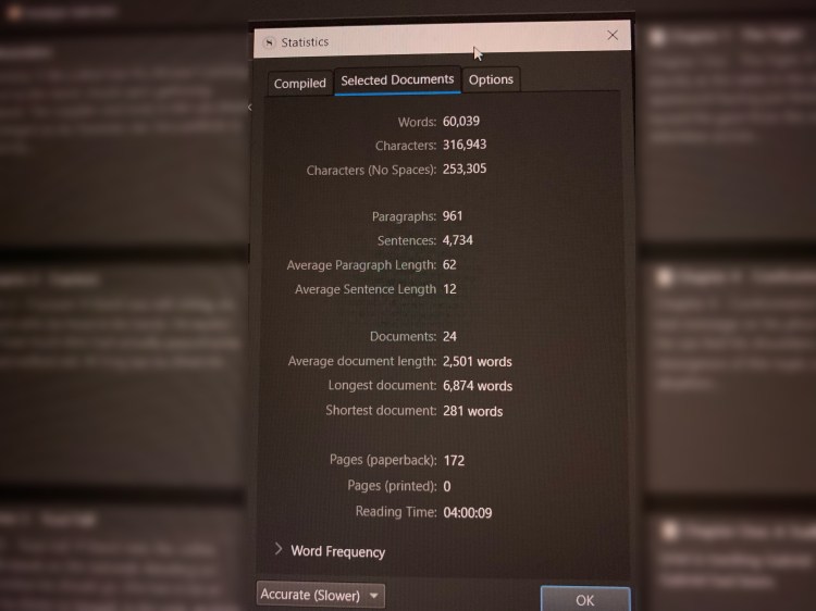 I still have one more scene to write for the ninth story and then I am hoping to do at least two (2) more stories. I also have another story to get into second draft status and there is a chance the story will grow as I do that. I have been using my computer’s built in screen reading utility to read my writing back to me, which has not only helped me with grammar and typos, but also with flow and tense. It’s a great tool that is built into all computer operating systems (e.g., Linux, macOS & Windows) and I highly recommend it. I wrote a small post about it on Reddit, which you can read here.